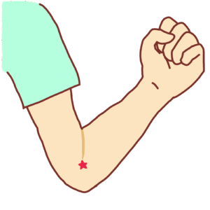- 場所:肘を曲げた時にできるシワの内側の端